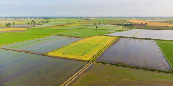 Paddy rice cultivation in the northern Italian region of Piedmont